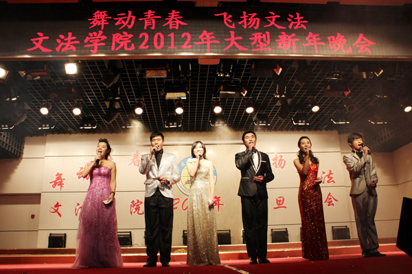 开幕词后,晚会正式开始。民间舞《小城雨巷》,仿佛带领观众走进了江南小巷;小品《不能公开的爱》,更是令观众笑声不断,掌声不断;院学工老师为大家倾情献唱《相亲相爱》,使晚会现场洋溢着温馨的氛围;民族大联欢节目中,研究生的傣族舞《月光下的凤尾竹》,本科生的新疆舞《美丽的维族姑娘》、中央民族大学的藏族舞《吉祥谣》带领大家领略了异族风情;歌曲联唱、手语表演《小手拉大手》、中华古韵《青花瓷》、复古舞《Roly Poly》、小品《芝麻开门》、歌舞剧《歌舞青春》等节目充分展现了学院学生的多才多艺。最后,晚会在学院第八届团委学生会主要成员的合唱声中圆满结束。