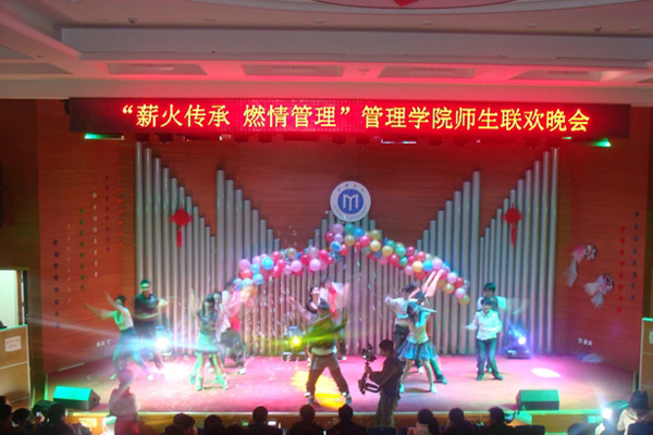 12月19日晚,管理学院在民族楼407举办了“薪火传承,激情管理”师生联欢晚会。学生工作处处长陈浩、管理学院党总支部书记朱李平、院团委书记赵麟与300余名师生一起观看了晚会。
