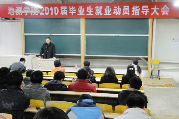 11月23日下午,地球科学与测绘工程学院在理化楼402召开2010届毕业生就业动员指导大会。学生工作处处长陈浩、地测学院党总支副书记鲍玲、毕业生就业指导中心杨大鹏、地测学院辅导员、毕业生等参加了大会。会议由院团委书记张蕊主持。