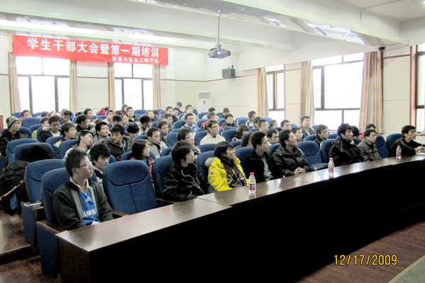 11月17日下午,资源与安全工程学院第一期团学干部培训在民族楼135报告厅拉开帷幕。院党总支副书记安宇、政治辅导员邵长宝,院团委、学生会全体学生干部和本科班级主要学生干部共80余人参加培训。