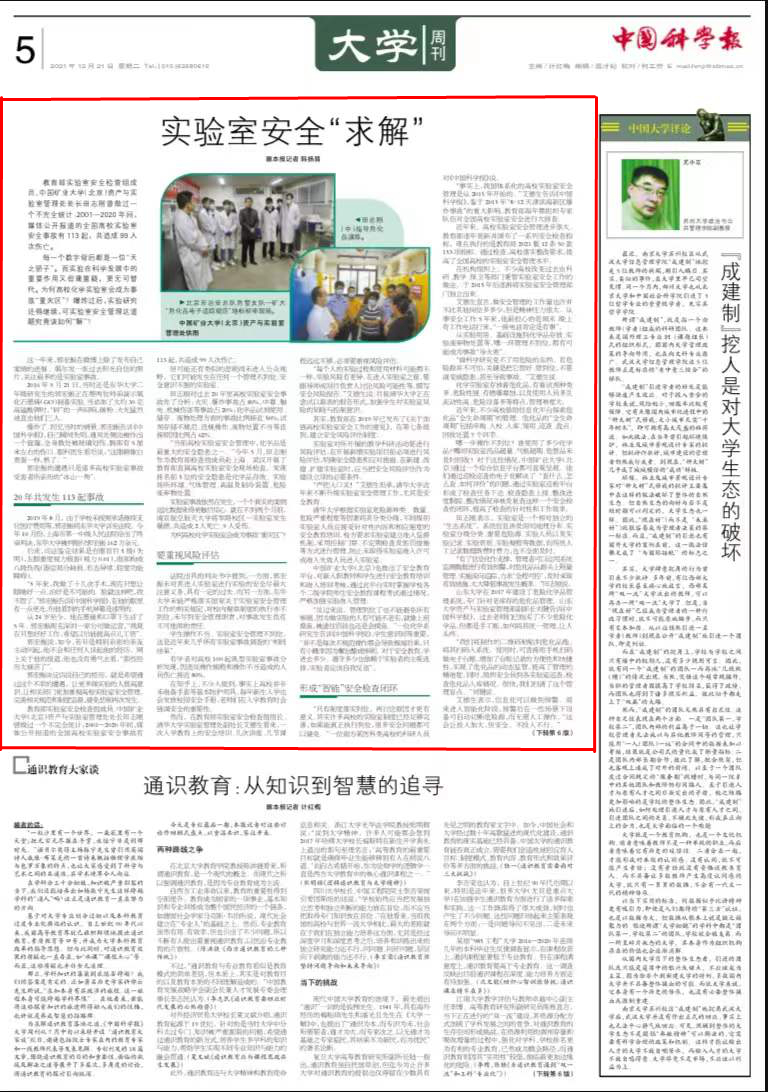 可喜的是,12月10日,教育部印发了《教育部办公厅关于开展加强高校实验室安全专项行动的通知》,对下一步的高校实验室安全工作作了具体指导。