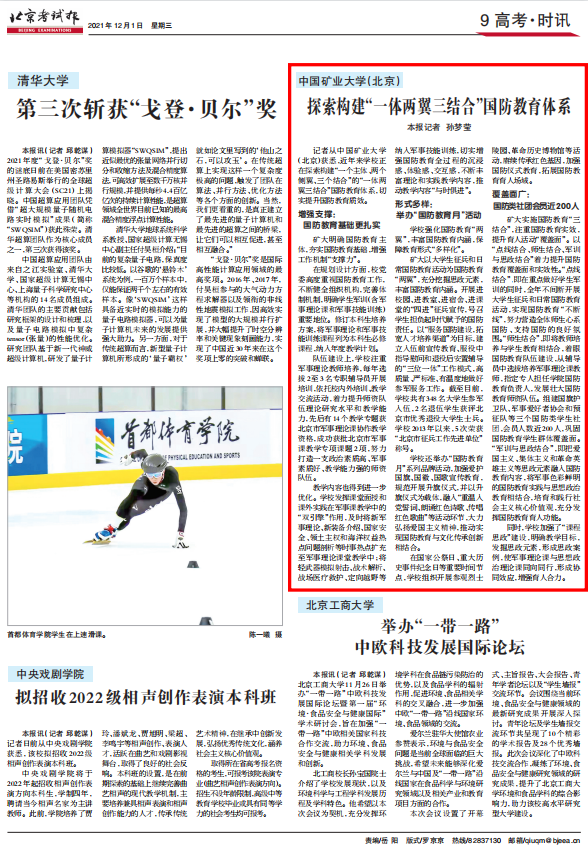 【北京考试报】中国矿业大学(北京)探索构建“一体两翼三结合”国防教育体系