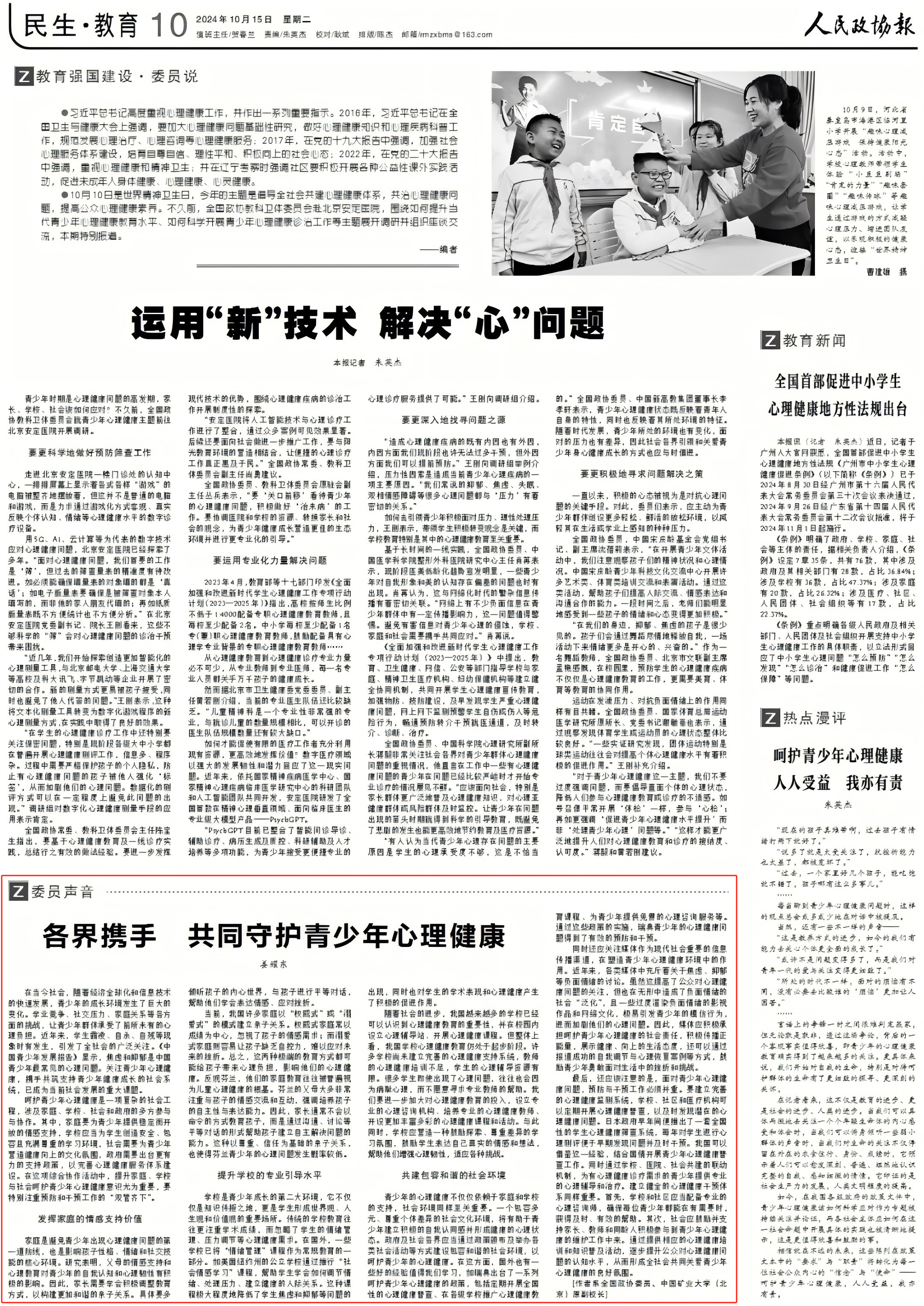 【人民政协报】全国政协委员姜耀东:各界携手 共同守护青少年心理健康
