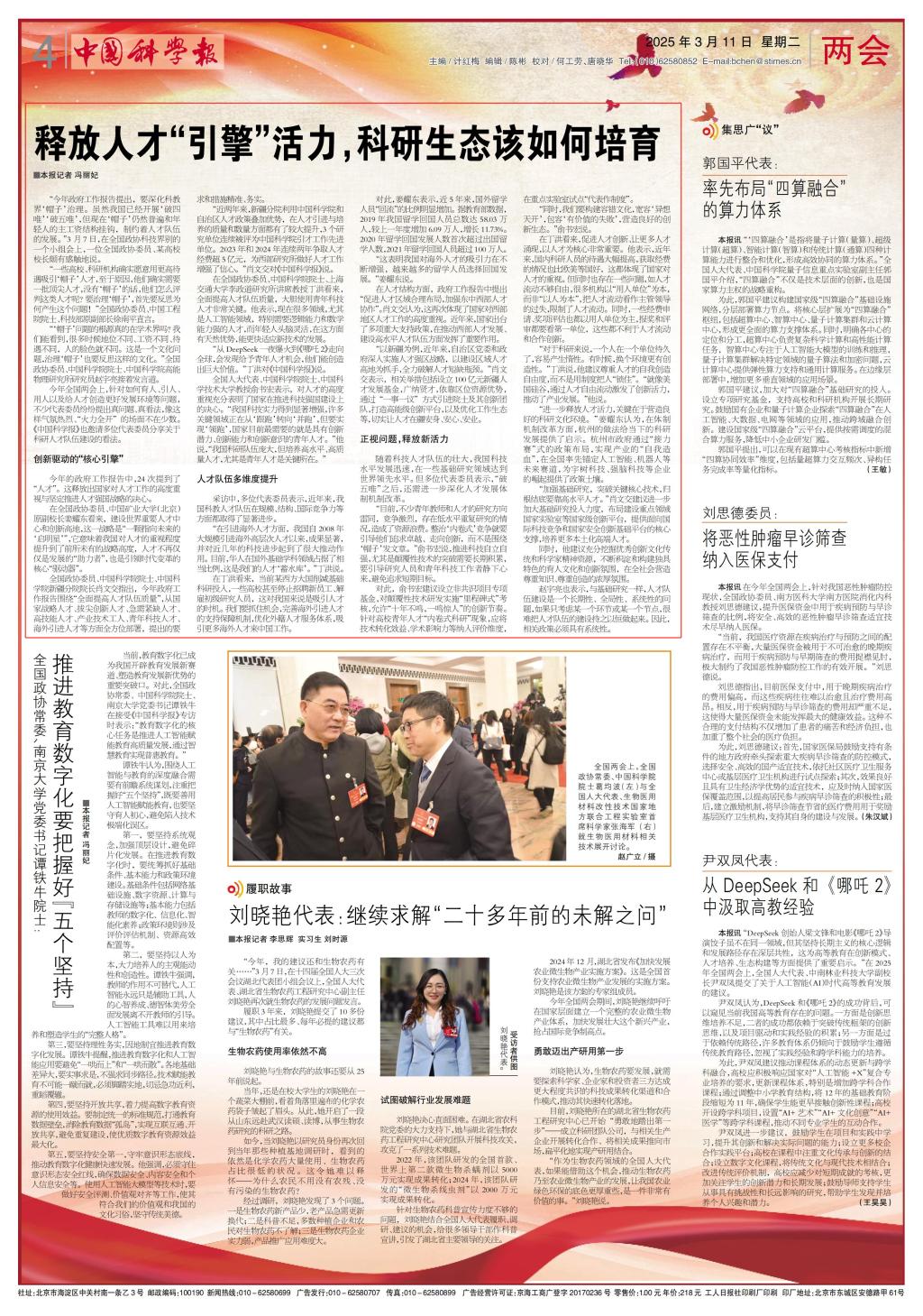 全国人大代表、中国科学院院士、中国科学技术大学教授俞书宏表示,对人才的高度重视充分表明了国家在推进科技强国建设上的决心。“我国科技实力得到显著增强,许多关键领域正在从‘跟跑’转向‘并跑’,但要实现‘领跑’,国家目前最需要的就是具有创新潜力、创新能力和创新意识的青年人才。”他说,“我国科研队伍庞大,但培养高水平、高质量人才,尤其是青年人才是关键所在。”