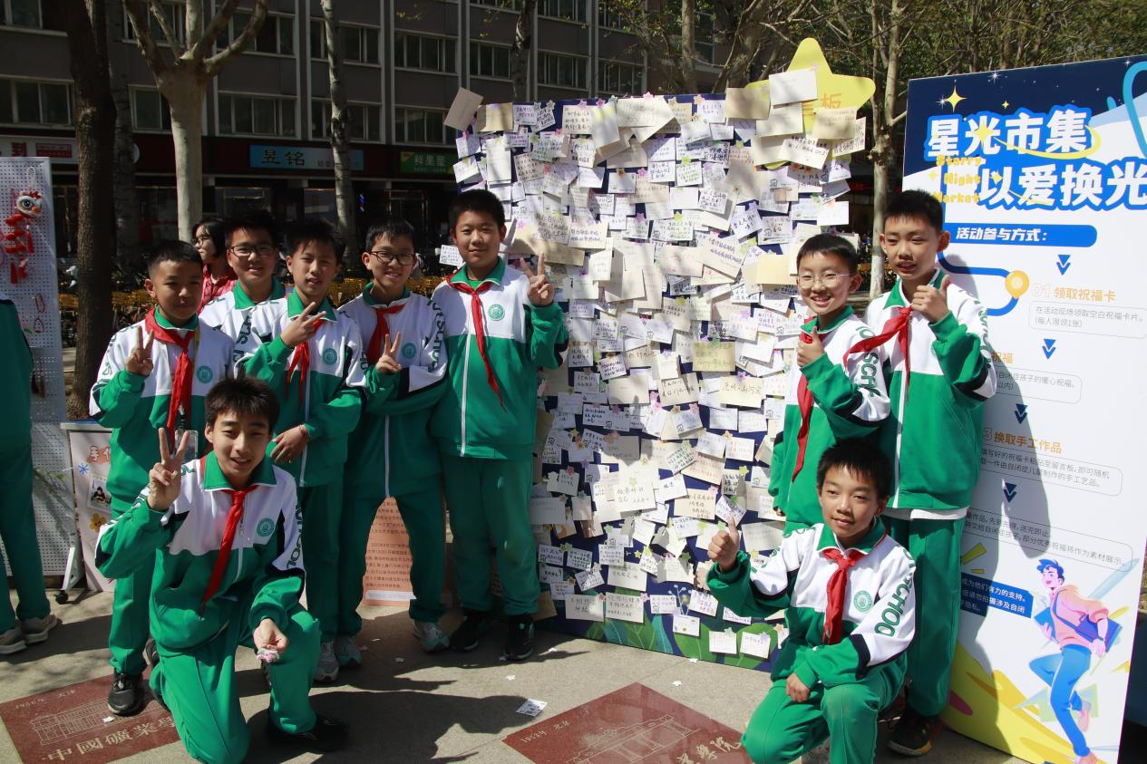 本次活动通过展出孤独症儿童及青少年创作的两百余件艺术作品,色彩斑斓的画作、精巧细致的手工艺品,让学生们看见了“星星的孩子”富有创造力的艺术世界,感受特殊群体面对生命的坚韧。活动现场热闹非凡,精心设置的“星光市集,以爱换光”环节,学生们通过书写暖心祝福卡片,换取孤独症儿童的手工作品,“萤火予星光”形成礼物与情感之间的温暖流动,体现了当代学生“助人亦自助”的心灵共济治愈之道。“星光科普,有奖问答”环节中人群络绎不绝,同学们在趣味互动中学习孤独症的症状、成因、治疗方法等知识,现场专业心理咨询师耐心答疑解惑,将晦涩的专业知识转化为通俗易懂的内容,帮助学生们搭建起理解与包容的桥梁。不同年龄段的学生在活动中相互交流、共同学习,让关爱特殊群体的意识扎根于校园文化之中,提高学生对社会责任的思考与担当。