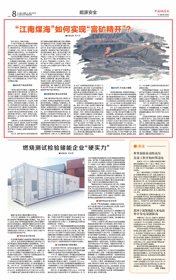 王炯指出,在“富矿精开”战略带动下,贵州近年持续推动资源精准定位,向千米以下地底深处挺进找盲矿,增加资源储量,发现更多潜在矿产资源。同时,贵州优化资源配置,通过向优强企业配、用市场方式配、朝产业协同配,让资源更多流向能够有效开发利用的企业,促进产业协同发展。推广智能开采,提升开采效率,减少井下作业人员,降低安全风险,提高煤炭产能产量利用效率。