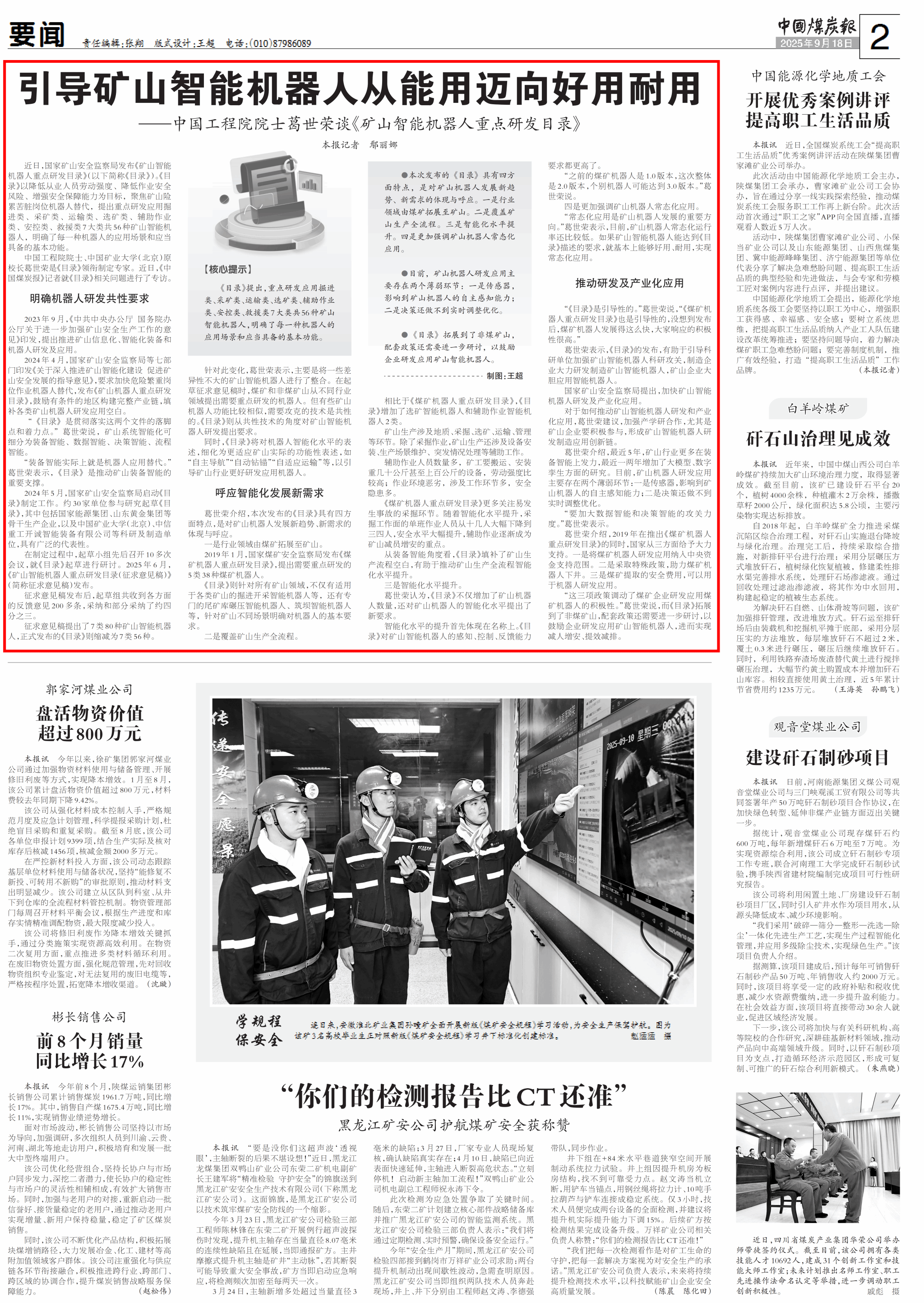 葛世荣介绍,2019年在推出《煤矿机器人重点研发目录》的同时,国家从三方面给予大力支持。一是将煤矿机器人研发应用纳入中央资金支持范围。二是采取特殊政策,助力煤矿机器人下井。三是煤矿提取的安全费用,可以用于机器人研发应用。