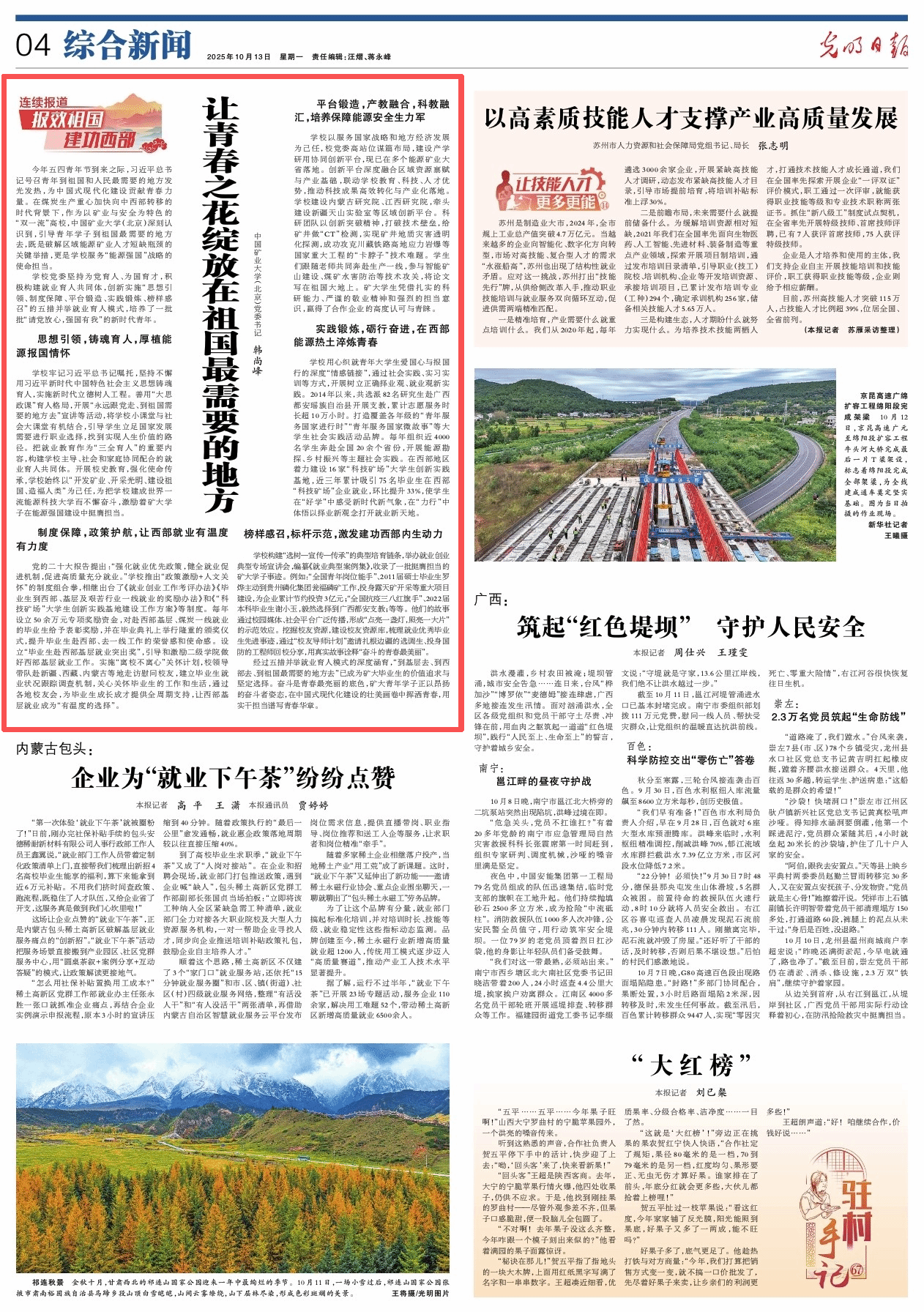 编者按:校党委书记韩尚峰在《光明日报》2025年10月13日第4版发表署名文章《让青春之花绽放在祖国最需要的地方》,请看报道——