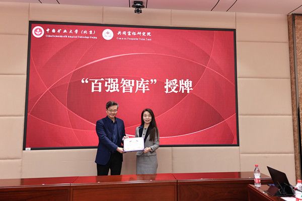 中国矿业大学(北京)共同富裕研究院入选2025年度CTTI(中国智库索引)“高校智库百强”。论坛上,谭凯为“共同富裕研究院”授牌,充分肯定了共同富裕研究院成立5年来在支撑学科建设、提供高质量政策建议、创新复合型人才培养、践行科学教育评价导向等方面取得的成绩,赞许研究院立足学校矿业、能源等特色学科优势与多学科协同底蕴精准对接国家战略所做的努力,并期许其以百强智库为新起点,持续深耕共富领域研究,彰显新型高校智库的责任与担当。