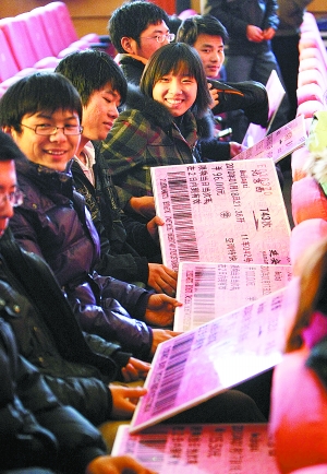 昨天,来自首都80余所高校的部分寒假留校贫困大学生在中国矿业大学“2010年关心服务寒假留校大学生主题活动”启动仪式上收到了返乡火车票。据悉,团市委2010年关心服务寒假留校大学生活动,将为本市2000名留校大学生做赠送“文化小锦囊”与“爱心大礼包”、提供2000个就业见习岗位等10件实事。本报记者 方非摄