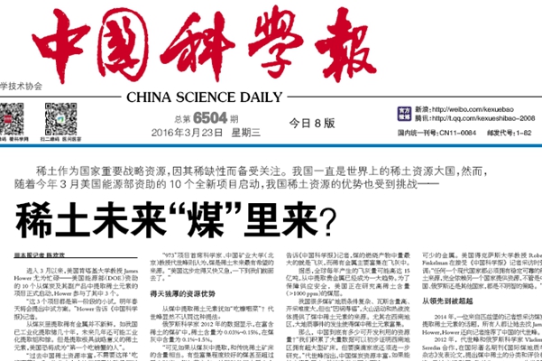 2014年,一位来自匹兹堡的记者想采访煤炭提取稀土元素的话题,所有人都让她去找James Hower,Hower还向记者推荐了中国的代世峰。