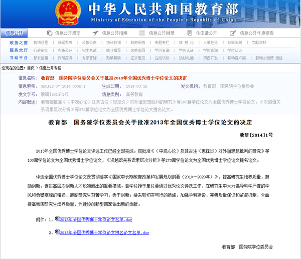 3月14日,教育部、国务院学位委员会发布《关于批准2013年全国优秀博士学位论文的决定》,中国矿业大学(北京)流体力学专业李英骏教授指导的王立锋博士完成的《预热烧蚀瑞利-泰勒不稳定性射流状尖钉形成机制》获全国百篇优秀博士学位论文。