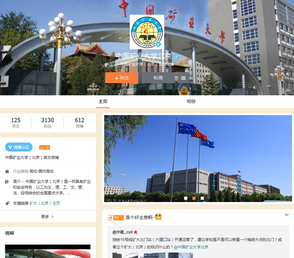 5. 中国矿业大学(北京)官方微博、微信正式上线