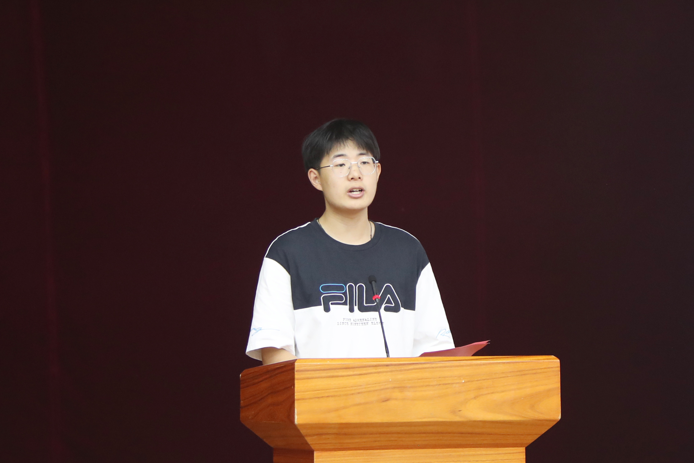 新生代表法学班2023级硕士研究生马明天号召同学们将“小我”融入“大我”,发扬青春的能动力和创造力,在新的征途中踔厉奋发,担起青年的责任。