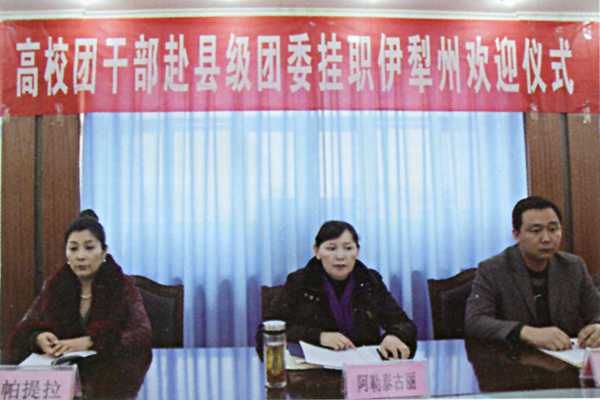 阿勒泰古丽书记对挂职干部表示欢迎,介绍了伊犁州的整体情况以及伊犁州团委工作的总体思路,并对全体挂职于部以及相关县市团委书记提出要求:要深刻认识到高校共青团于部到县级基层团委挂职的重要意义;相关县市团委要关心挂职干部的工作和生活,切实为挂职干部解决难题;挂职干部要牢牢把握工作职责和要求,促进伊犁州基层团委工作新发展,为新疆跨越式发展和长治久安做出贡献。