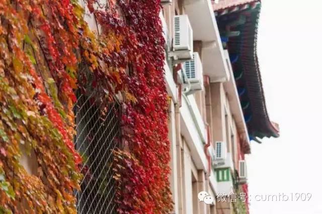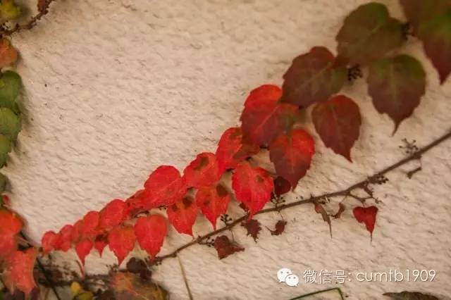 “几度枫红无人知,却叹身旁无秋意。”你说身边无美景,却不知就在民族楼墙上,一簇爬山虎已经变的如火赤红,在矿大空荡的街边,静静回眸,墙角路边枫红十里,它们安静无声,点缀这校园的景色。