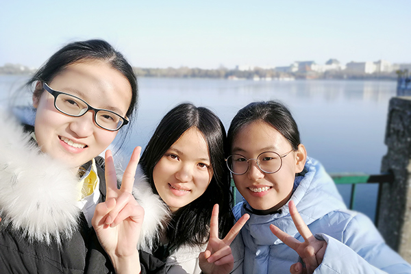 三个人的身影经常一起出现,上课坐在一起,晚自习后一起讨论问题,一起去图书馆,一起参加志愿活动,一起外出游玩。独行快,众行远。1+1+1的力量大于3。相互督促,相互鼓励,每个人都在进步。在大一期间,447宿舍取得了不凡的学习成绩。王萌专业第一,杨涵月专业第三,张智慧专业第五,这是每个人努力的结果。三个人在一起形成了许多优秀的学习习惯,只要有时间就会去图书馆,有不懂的地方立即讨论。良好的学习习惯形成了良好的学风,良好的学风促使每个人取得优秀的成绩。这一切是那么的自然,那么的和谐。新的学期已经到来,447必将继续保持高昂的学习热情,继续前行。