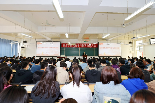本网讯 4月1日上午,应急管理与安全工程学院党史学习教育动员大会在教学楼209举行。校党史学习教育第一巡回指导组副组长、党委组织部部长谭凯,联络员李光富出席会议。安全学院全体师生党员和非党员教师等300余人参加会议。院党委副书记谷博主持会议。