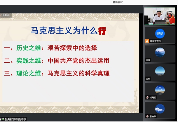 本网讯 为进一步学习宣传贯彻习近平总书记“七一”重要讲话精神,扎实推进党史学习教育,10月28日下午,学校通过线上直播方式召开第八场党史专题辅导报告会。我校教师宣讲团成员,马克思主义学院教授、博士生导师桂翔以《马克思主义为什么“行”?》为题作专题辅导报告。教职工代表200余人参加报告会。