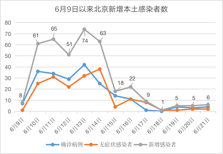 本网讯 6月21日0时至24时,北京新增4例本土确诊病例和2例无症状感染者,无新增疑似病例;新增1例境外输入确诊病例和1例无症状感染者,无新增疑似病例。治愈出院19例。