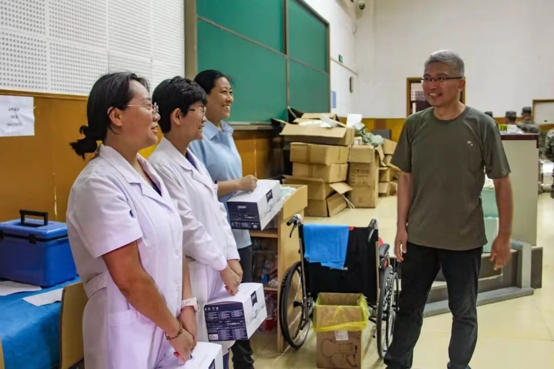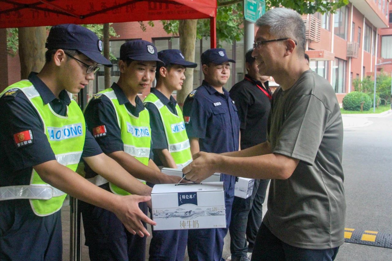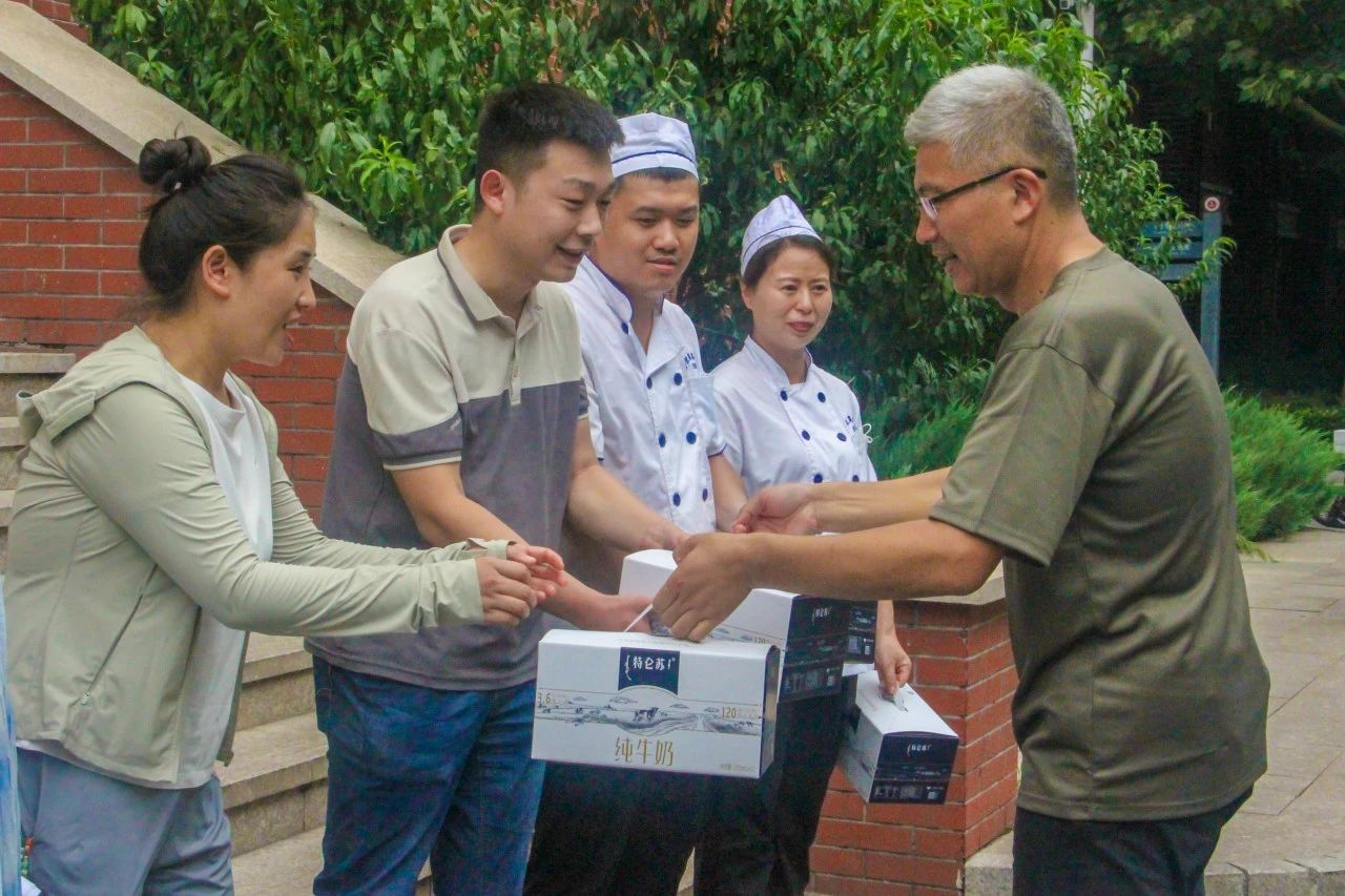 各学院领导在训练场为参训学生发放慰问品,肯定了军训工作取得的阶段性成果,详细询问大家的身体状况和训练感受,并对大家在艰苦环境下的坚持表示高度赞赏。他们鼓励参训学生们继续发扬吃苦耐劳的精神,保持高昂的士气,圆满完成军训任务。