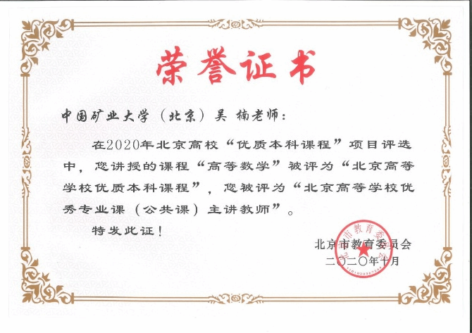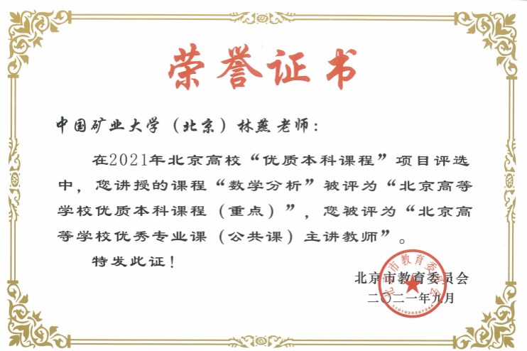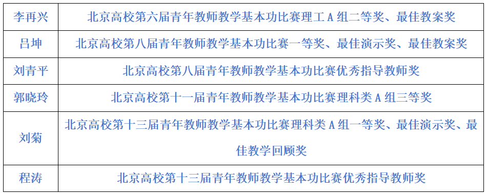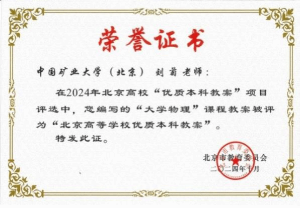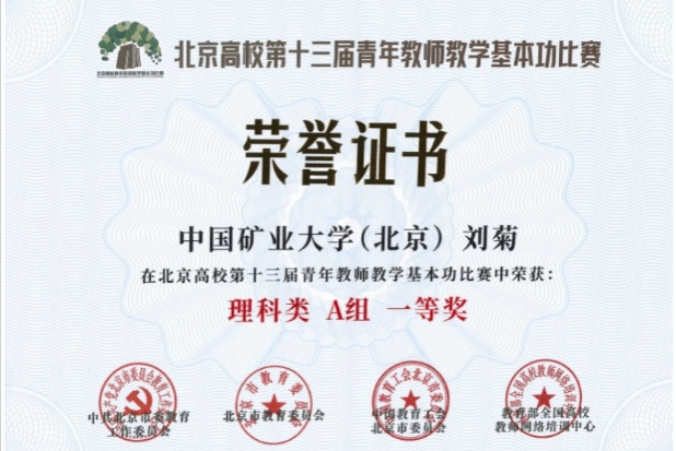 数理公共课75%荣获北京市以上荣誉。《高等数学》、《概率论与数理统计》先后荣获北京高校优质本科课程,《大学物理》荣获北京高校优质本科教案。“新工科背景下面向矿业类应用型创新人才培养的大学数学课程案例研究”立项高等学校大学数学教学与研究发展中心项目。大学物理教研室教师领衔申报并获批2024年“北京高校青年教师创新教研工作室”。2023年,刘菊老师在北京高校第十三届青年教师教学基本功比赛中获得理科A组一等奖、最佳现场展示奖和最佳教学回顾奖。同时,程涛老师获得了优秀指导教师奖。