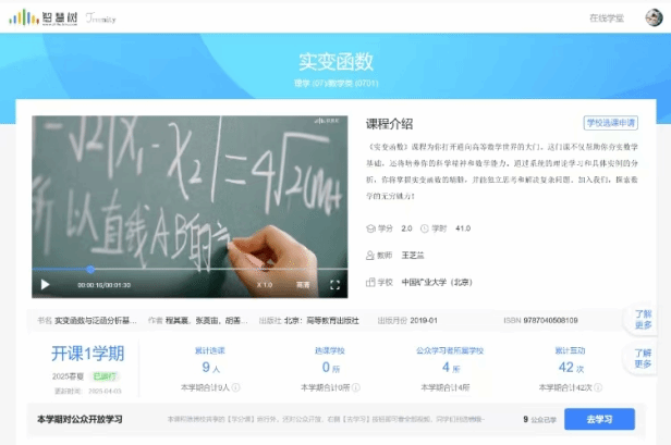 夯实数学根基,持续加强数学核心课程建设。《数学分析》荣获北京高校重点优质本科课程及校级课程思政示范课一等奖;《高等代数》由北京市教学名师和北京高校优秀本科育人团队负责人领衔讲授;《数理统计》荣获首批国家级一流本科课程,上线国家MOOC平台,同时作为MOOC课程获得学习者和校方的一致好评;《实变函数》自2020年在B站上线以来,点击播放已超128万,在“最多播放”、“最多弹幕”、“最多收藏”等指标下均排同课程之首;另外作为开放课程,于2025年4月也在智慧树平台上线;《解析几何》、《时间序列分析》、《数值分析》等诸多数学专业课程均为校教学名师授课或为校级优秀课程、校级课程思政示范课。