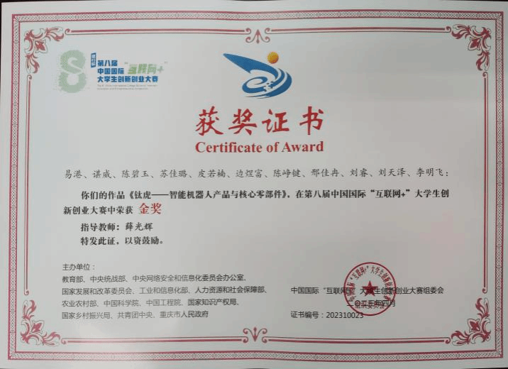 竞赛培育体系化:聚焦机械工程、电气工程、机器人与智能控制等学科特色,系统构建学科竞赛培训平台。通过建设“科技”实现产学研协同育人,进一步实现拔尖创新人才培养模式改革与实践。近四年获中国国际‘互联网+’大赛全国总决赛金奖1项,实现了该项赛事金奖的突破。四年来累计斩获中国机器人及人工智能大赛等教育部A类赛事全国一等奖32项、二等奖30项。