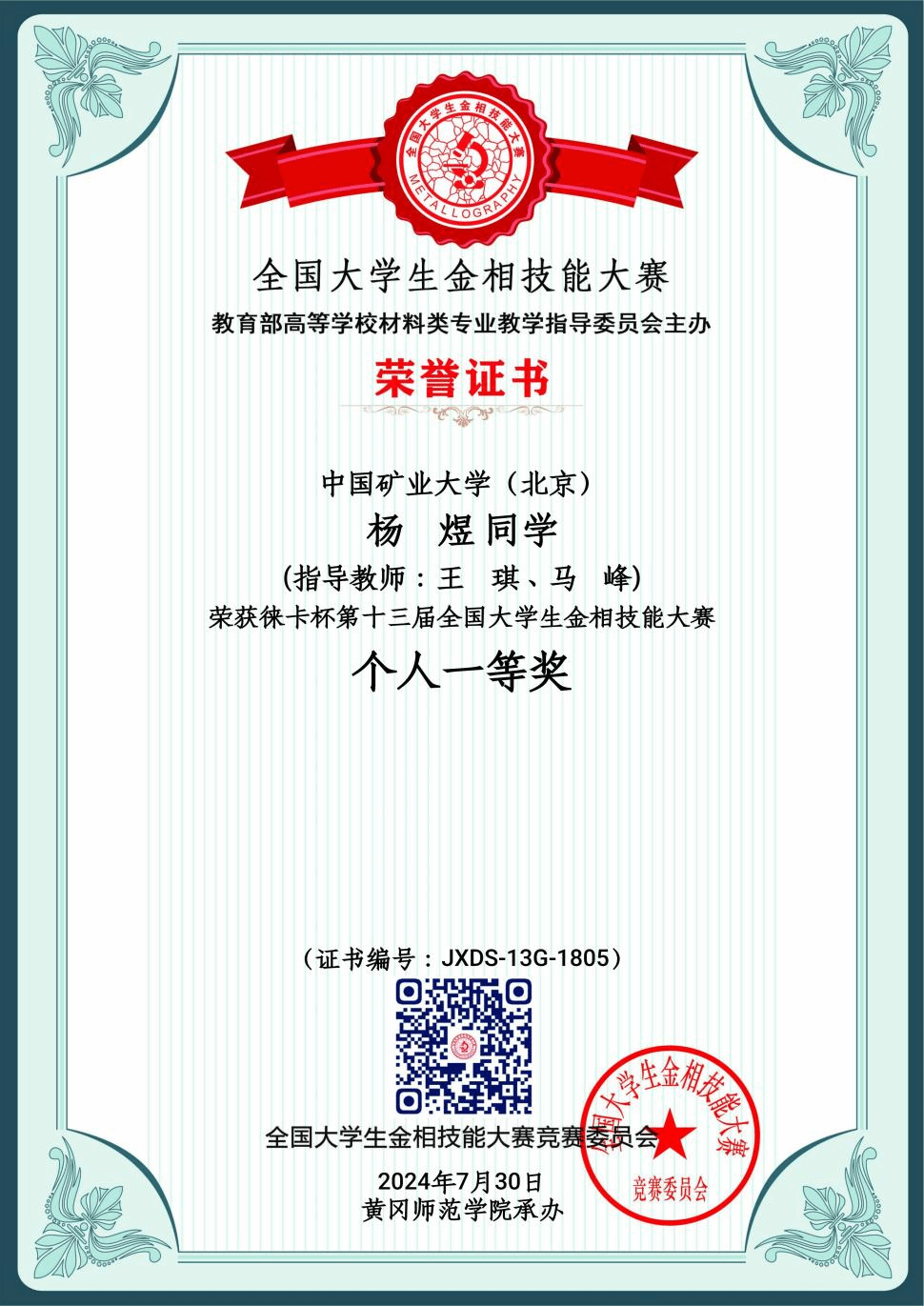 5.王咏琪,中共党员,中国矿业大学(北京)材料科学与工程专业2020级本科生,现推免至清华大学电子工程系攻读硕士学位。曾担任机电学院学生会主席团成员、材料2020-1班班长。在校期间,发表三作EI期刊论文1篇,一作EI会议论文1篇,产出毕业论文获校级优秀本科生毕业设计(论文)一等奖,以负责人身份主持校级大创项目并顺利结项;获国家奖学金1次、校级特等奖学金2次;获评北京市优秀学生干部、校级优秀毕业生、校级优秀团干部、校级优秀团员、校级实践先进个人等荣誉称号,获中国高校计算机大赛全国优胜奖,第六届北京市大学生节能节水低碳减排社会实践与科技竞赛一等奖,美国大学生数学建模竞赛二等奖等各级竞赛奖项10余次。
