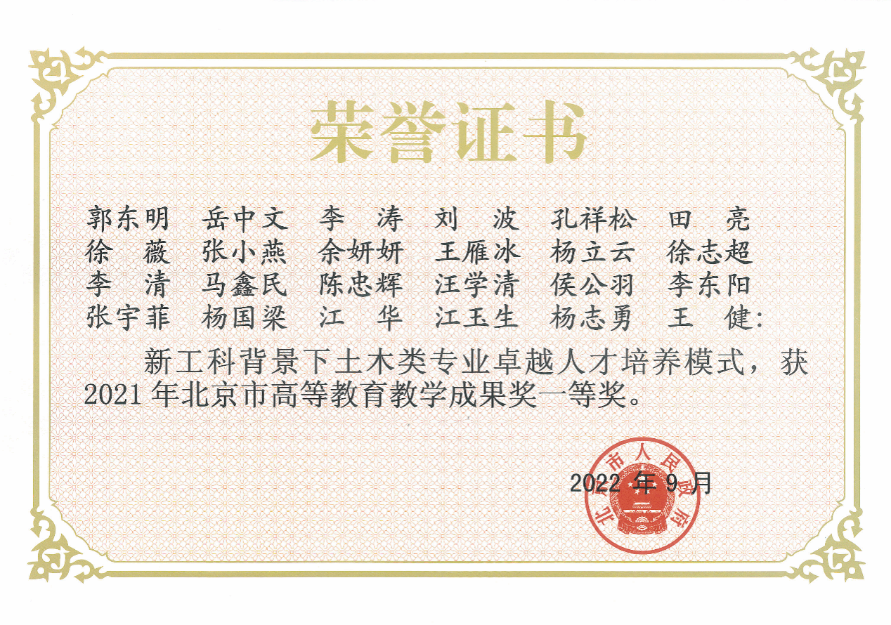 在专业建设方面,成效显著:土木工程、城市地下空间工程、工程力学均跻身国家一流专业行列;“城市地下空间工程”入选北京高校高精尖学科,建筑学专业获批北京市一流专业;新增“智能建造” 本科专业及“智能建造 + 葡萄牙语”联合学士培养项目,土木工程专业顺利通过认证。招生规模亦稳步扩大,从每年310人增长至370人。