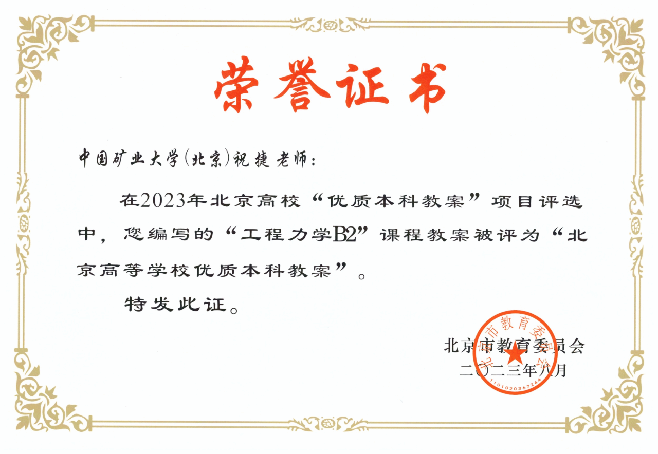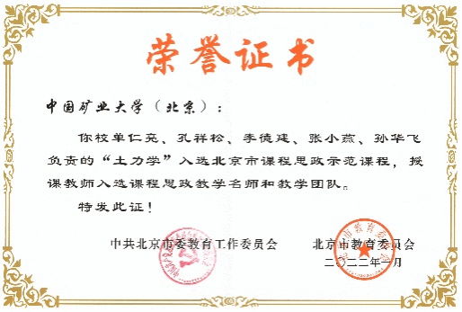 凭借扎实工作,学院斩获国家级课程思政示范课程1门、北京市高校课程思政示范课程1门,入选全国高等学校力学类专业优秀课程思政案 2例,建成校级课程思政示范课29门(居全校首位),并培育出国家级、北京市级课程思政教学名师及团队。