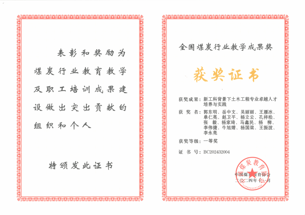 “十四五”期间,学院教学成果丰硕:获北京市高等教育教学成果奖一等奖1项、二等奖2项;斩获全国煤炭行业教学成果奖特等奖1项、一等奖2项、二等奖3项,另有相关论文获一等奖1项、二等奖1项。