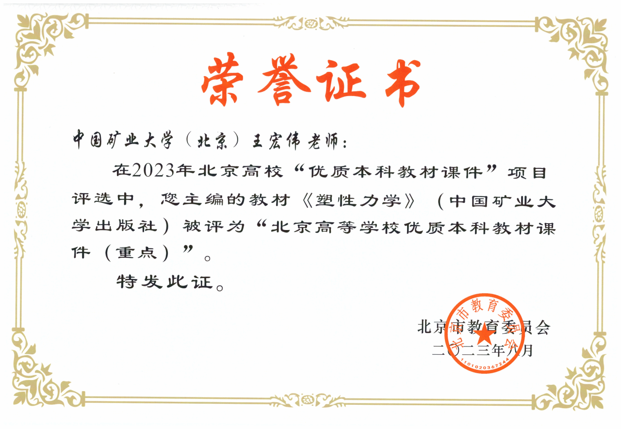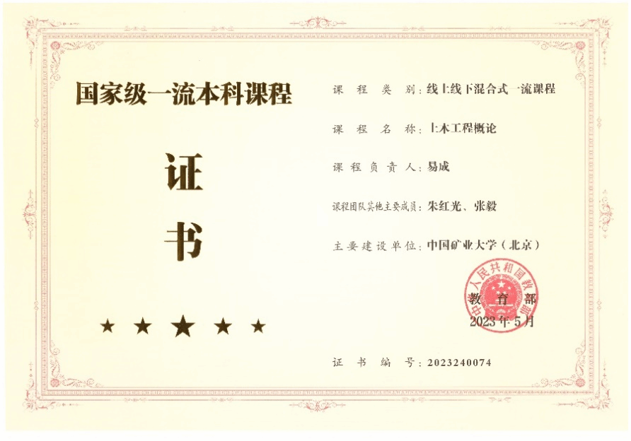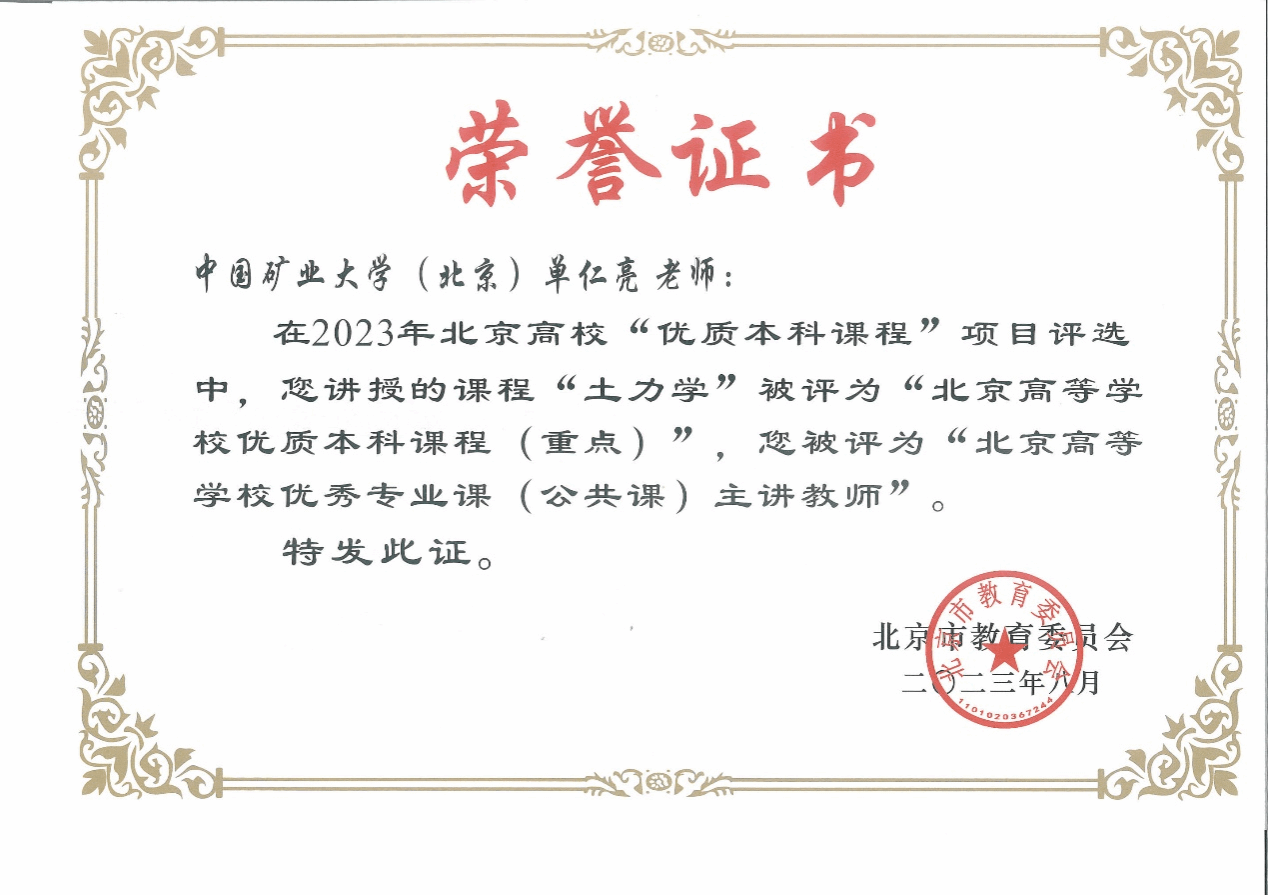学院以课程建设与教学改革立项为抓手,大力打造“金课”、建设“金材”。目前已建成国家级一流本科课程4门、国家思政示范课程1门、北京市高校课程思政示范课程1门、北京市优质本科课程3门(含重点项目2门)、北京高校教书育人“最美课堂”1门,入选全国力学类专业优秀课程思政案例2例。在学校课程中心“路况云学堂”上线课程14门,提供课程难点解析、教学资料等丰富在线学习资源;推进高质量精品课程建设与应用项目4项、线上线下课程培育项目2项。在“金材”建设方面,获评北京市优质本科教材7部、优质教案3部,牵头编写煤炭教育“十四五”规划教材8部,为教学质量提升奠定坚实基础。