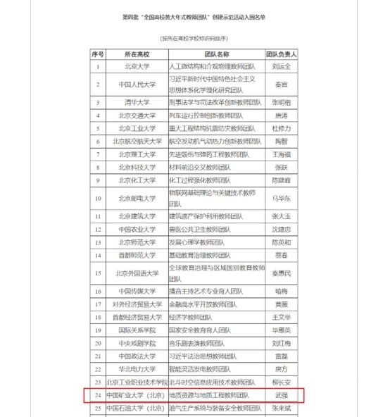 ——热烈祝贺中国矿业大学(北京)武强院士团队入围第四批“全国高校黄大年式教师团队”创建示范活动